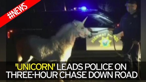 アメリカで夜の道路にユニコーンが出現し、警察が追いかけるという珍事が発生しました。