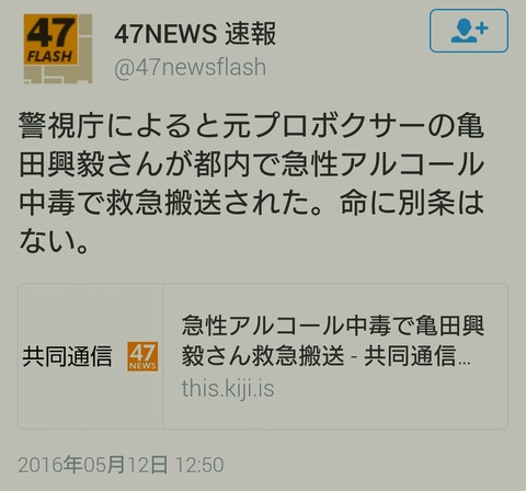 【速報】 亀田興毅、急性アルコール中毒で緊急搬送wwwwwwwwwww