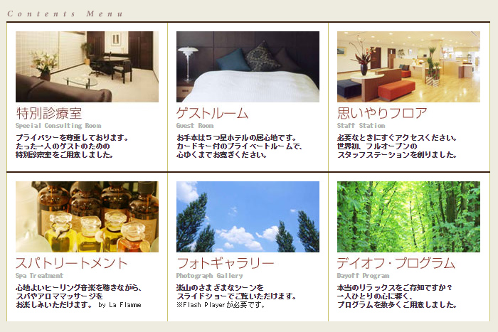 その他にも、スパトリートメントやトレーニングルーム、図書館、シアタールーム、更にイベントとして音楽コンサートなども行われる。この楽山という病院はこれだけでなく、目の前で手料理を作ってくれたりアルコールも飲めるという。