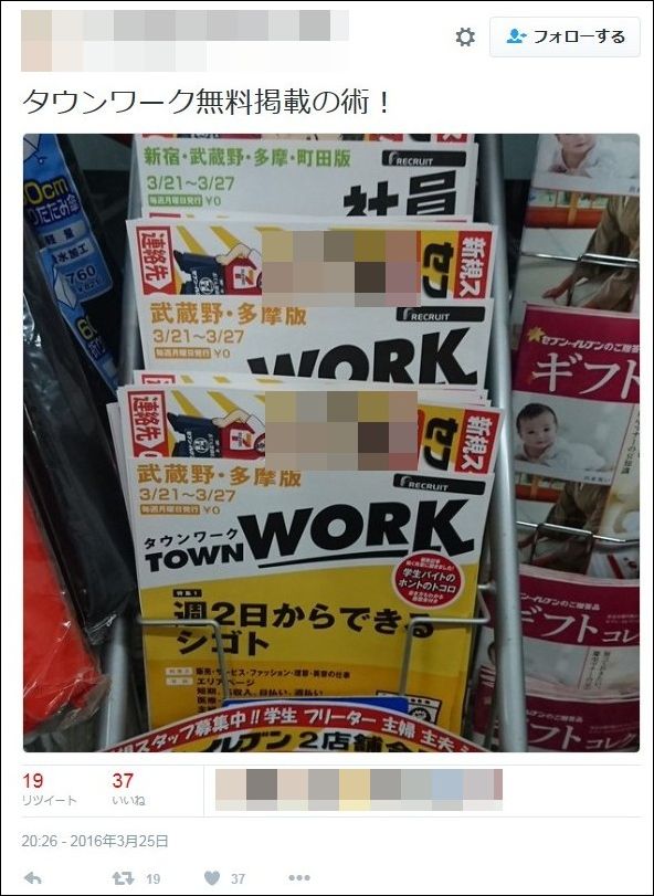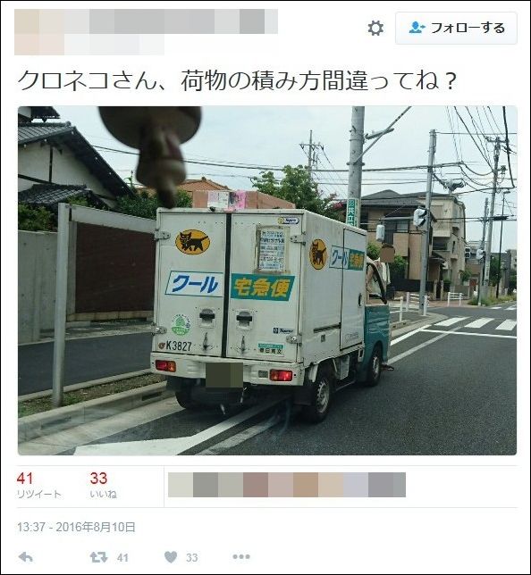 募集のチラシを挟み、「タウンワーク無料掲載の術!」などと自慢していた。8月には、宅配便業者が車の上に荷物を載せているとのことで、無断で撮影した画像を掲載して晒した。