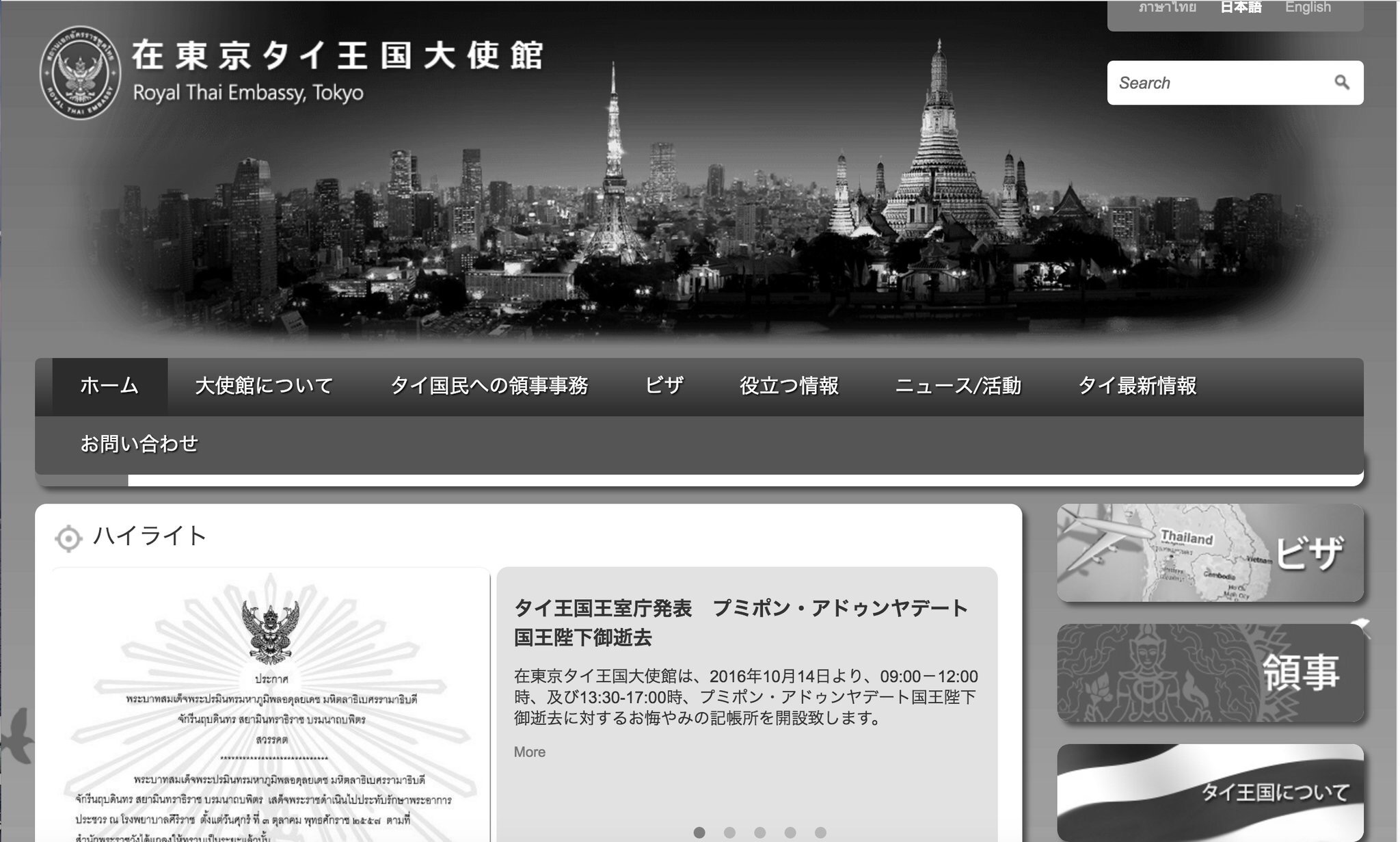 国王が逝ったタイの大使館ホームページwwwwwwwwwwwwwww (※画像あり)