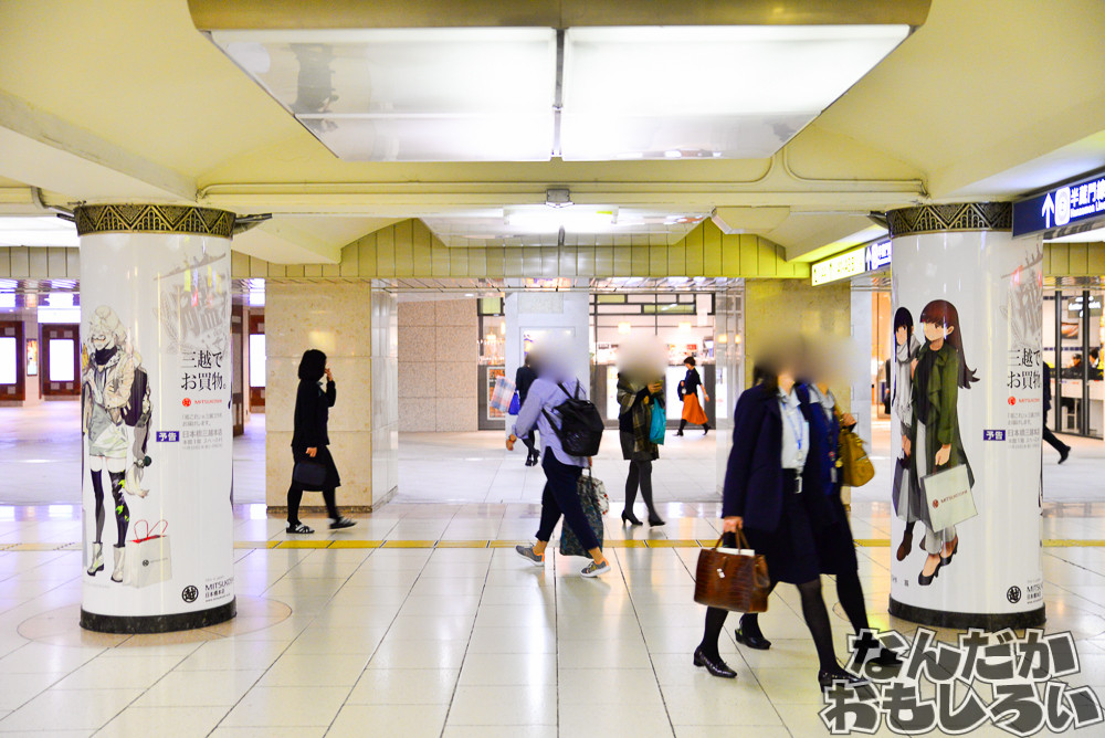 11月23日から29日の期間に開催される、「艦隊これくしょん -艦これ-」と「三越」のコラボ企画。その開催前に、三越前駅の地下道にて、アニメ広告が掲示されました。