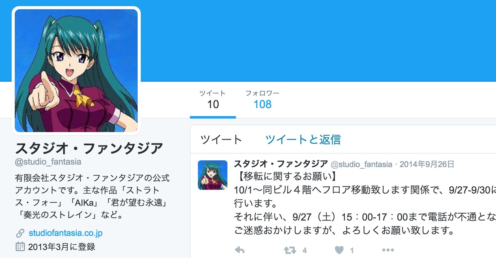 アニメ「ストラトス・フォー」「君が望む永遠」を制作したアニメ会社「スタジオ・ファンタジア」が破産手続きをしたと帝国データバンクにて発表がありました。