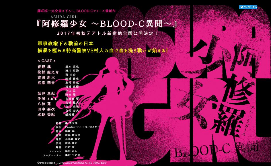 ホーム > 未分類 > 『BLOOD-C』実写映画化決定!舞台版を経て新たな展開を盛り込んだ書き下ろし新作 2017/01/12 『BLOOD-C』実写映画化決定!舞台版を経て新たな展開を盛り込んだ書き下ろし新作 http://asuragirl.com/ 続きを読む - 未分類