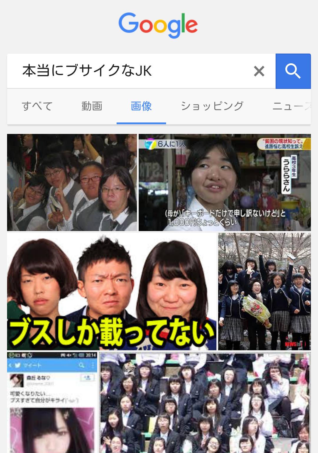 「本当にブサイクなJK」で検索した結果wwwwwwww (※画像あり)