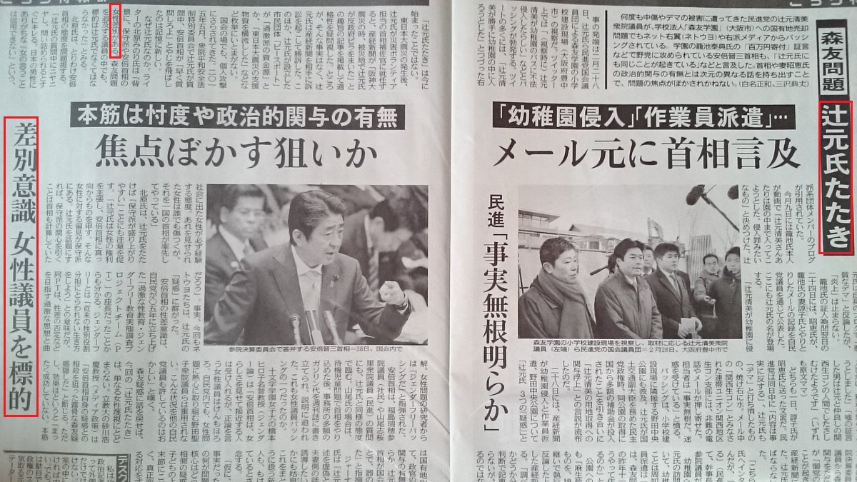 【画像】 東京新聞「辻元タタキは女性差別!」 (※画像あり)