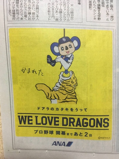 【悲報】ドアラさん、開幕早々潰されそうになるwwwwww (※画像あり)