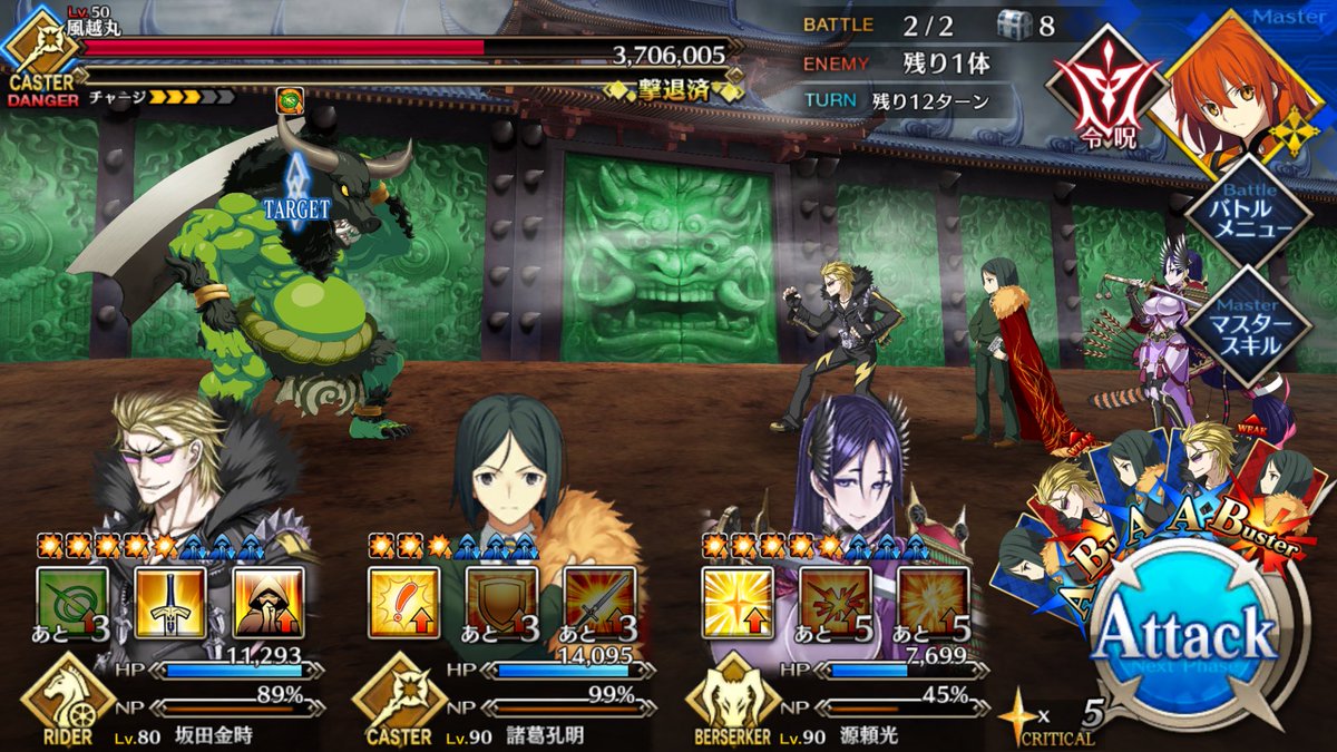 「Fate/Grand Order(FGO)」の小ネタですが、FGOでサーヴァントのNPがおそらく初めて99%になりました。