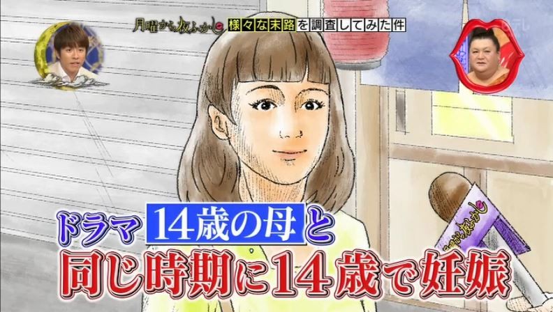 9月11日の『月曜から夜ふかし(日本テレビ系)』の後半にて「様々な末路を調査してみた件」というコーナーが放送された。その中で「竹の塚といえば重要なお知らせがもう1つ」として過去に放送された14歳で妊娠した女性にインタビューした回を振り返る。