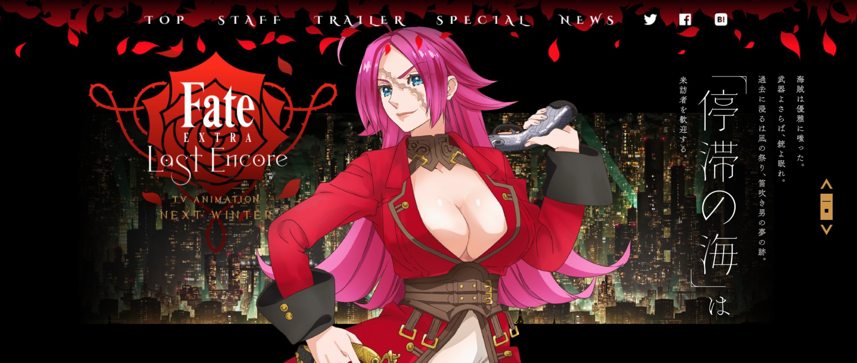 TVアニメ「Fate/EXTRA Last Encore」キャラクター別CMが公開されました。第1弾では、高乃麗さん演じるライダーが登場しています。