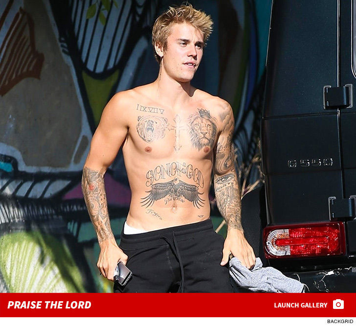 Justin Bieber’s got some new ink … okay A LOT of new ink.JB posted a vid of himself walking around his home Saturday morning — shirtless,