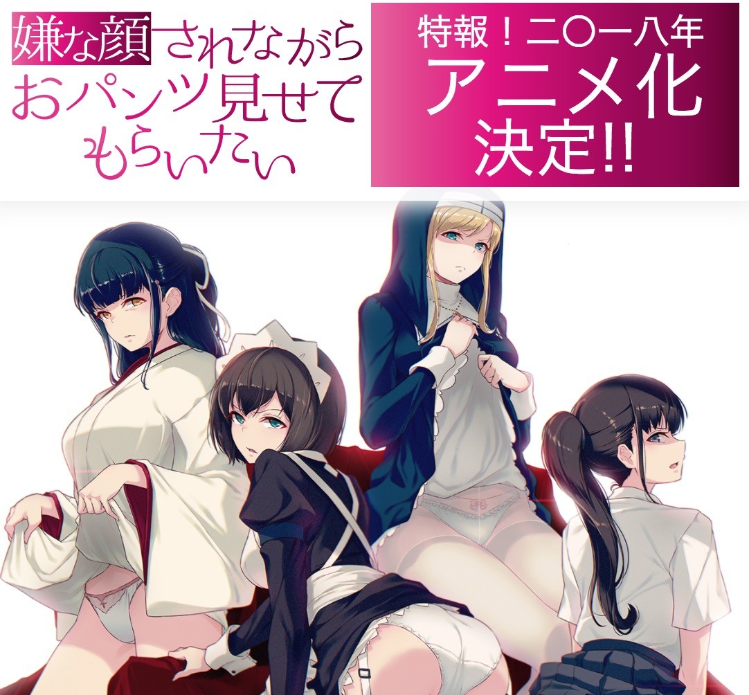 人気同人「嫌な顔されながらおパンツ見せてもらいたい本」が2018年アニメ化!人気声優も多数参加