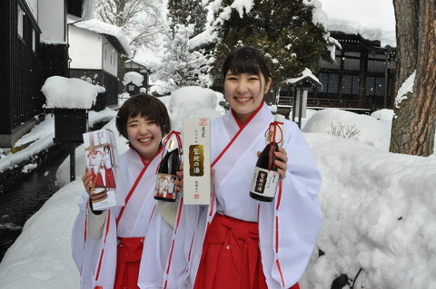 2人は「巫女ラベルは萌えのイメージですが、私たちは飛騨地方や本物のおいしい日本酒を知ってほしいとの思いで『燃え上がっている』」と強調する。瓶子付きの420ミリリットル入りは3240円。詰め替え用と巫女ラベルはいずれも720ミリリットル入り1620円。【中村宰和】