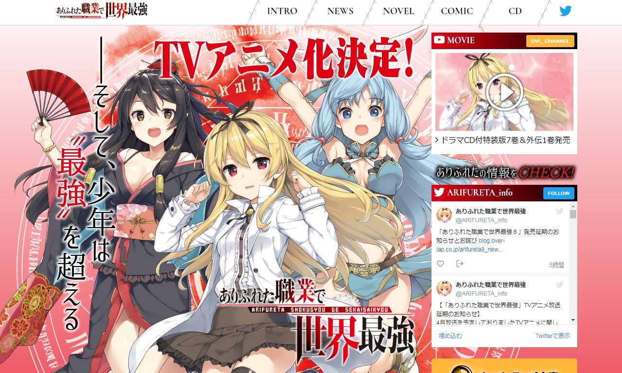 オーバーラップ文庫のライトノベル「ありふれた職業で世界最強」のTVアニメの放送延期が公式にてアナウンスされています。