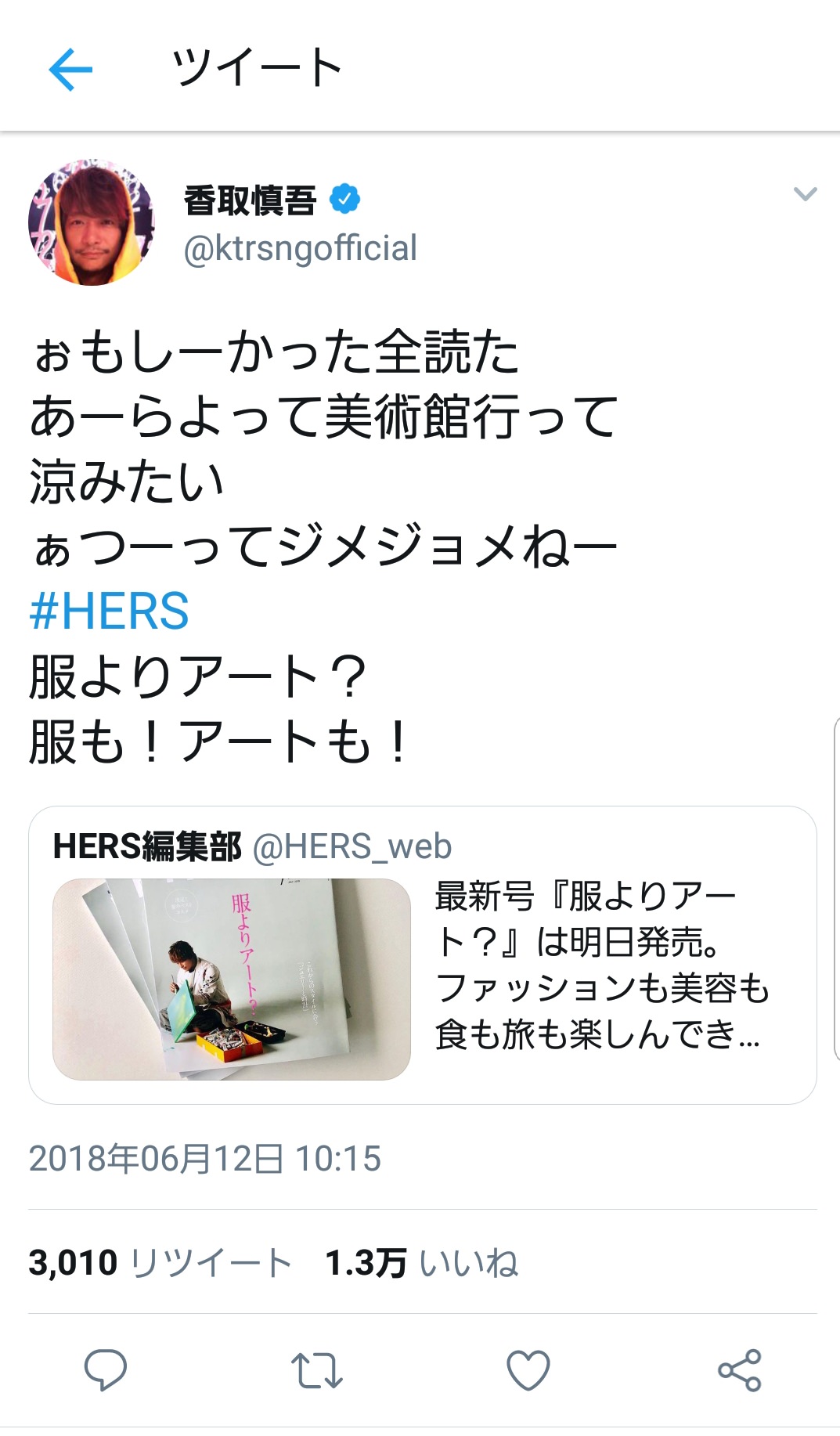服も!アートも! https://t.co/EHVZ21wXzO— 香取慎吾 (@ktrsngofficial) 2018年6月12日