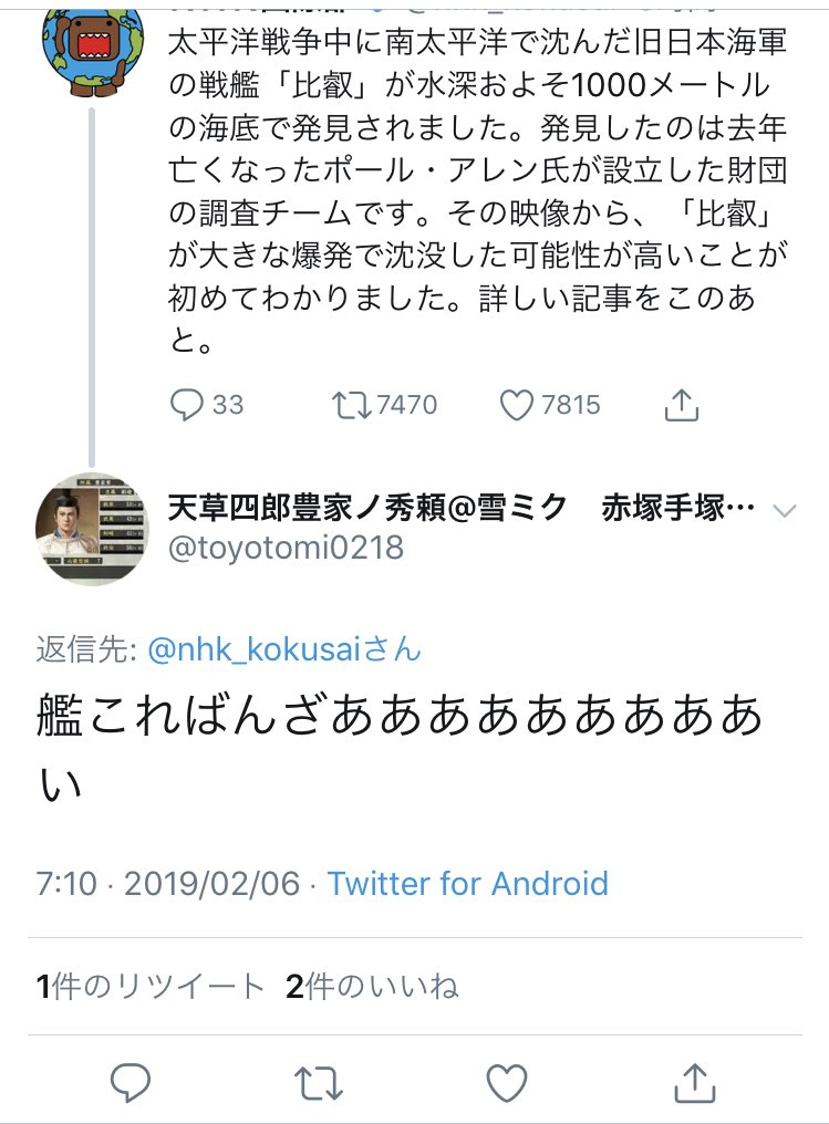 ホーム > 未分類 > NHK「戦艦『比叡』が海底で見つかりました」 艦これ提督「艦こればんさあああい」 2019/02/07 NHK「戦艦『比叡』が海底で見つかりました」 艦これ提督「艦こればんさあああい」 1: 2019/02/06(水) 14:02:43.72 ID:Mujeu17N0 艦これ公式「おかえりなさい」←別に沈んだままだぞ 続きを読む - 未分類