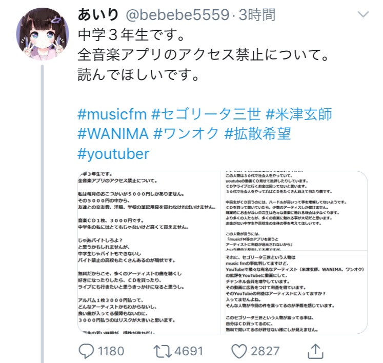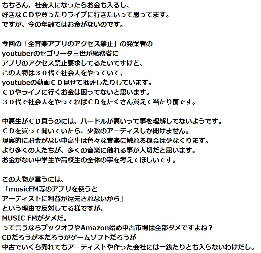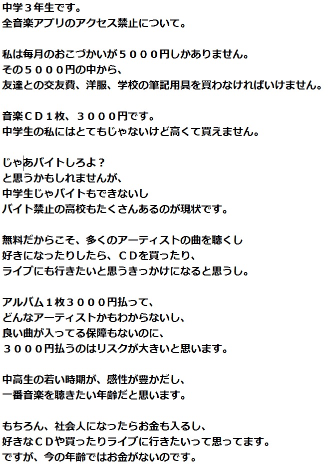 【悲報】歌手「違法アプリで音楽聴くなよ 」貧困JC「お小遣い少ないから仕方ないじゃん」