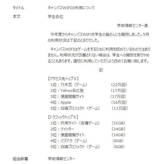 ホーム > 未分類 > 【画像】とある大学のWiFiアクセスランキング「漫画閲覧サイト」が上位になってしまう 2019/06/11 【画像】とある大学のWiFiアクセスランキング「漫画閲覧サイト」が上位になってしまう 1: 2019/06/10(月) 12:31:03.67 ID:s5lLihMXa 続きを読む - 未分類