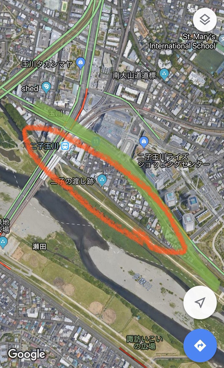 二子玉川の今浸水してるであろう地域、元々川沿いの行楽地みたいな場所で