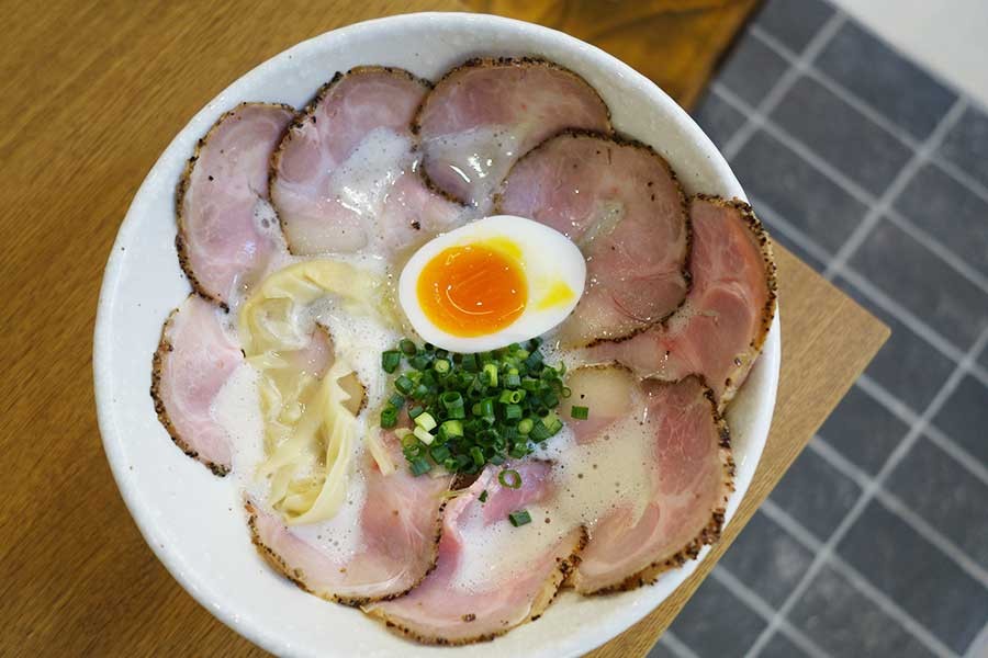 ブレンダーで撹拌して、泡のような食感に仕上げる白濁したスープが特徴。