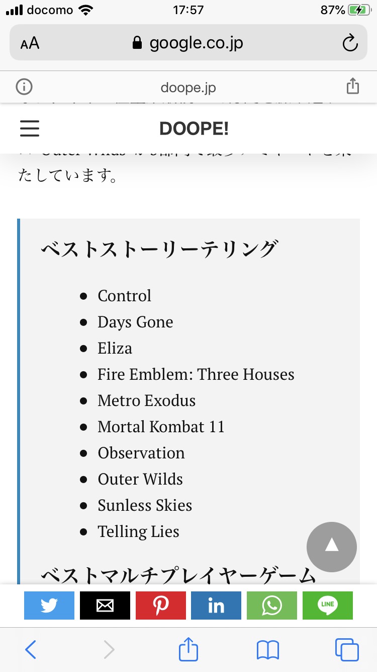 世界4大GOTY「JGA」ベストゲーム賞ノミネート(和ゲーではSEKIRO・バイオ2REに並ぶ評価)