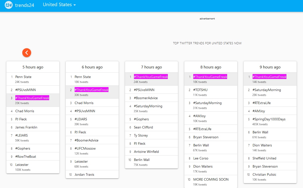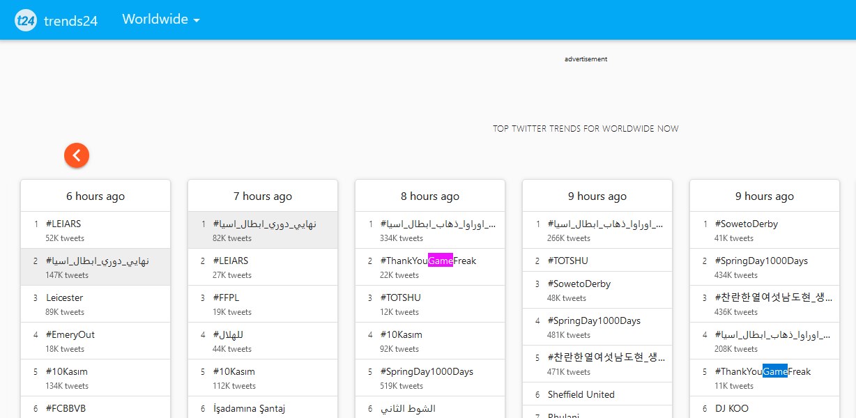 『ソード・シールド』の発売が迫る中、SNSで同作の開発を手がけるゲームフリークに感謝を告げるハッシュタグ #ThankYouGameFreak が全世界でトレンド入りを果たしている(Trend 24)。