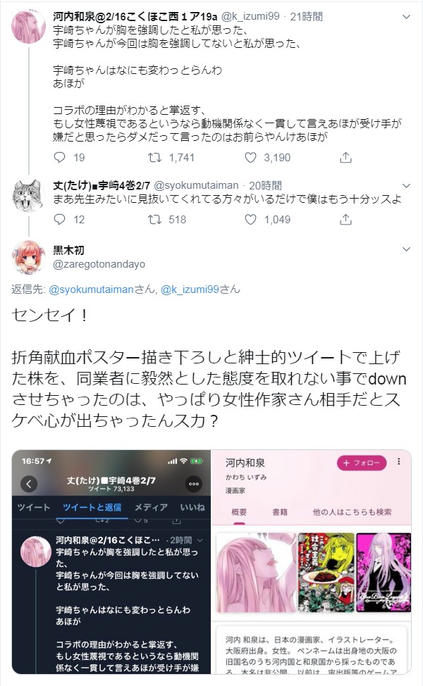 【悲報】宇崎ちゃん作者にキレたフェミ、「女作者だから狙ってんのか?」という意味不明なリプを送ってしまう