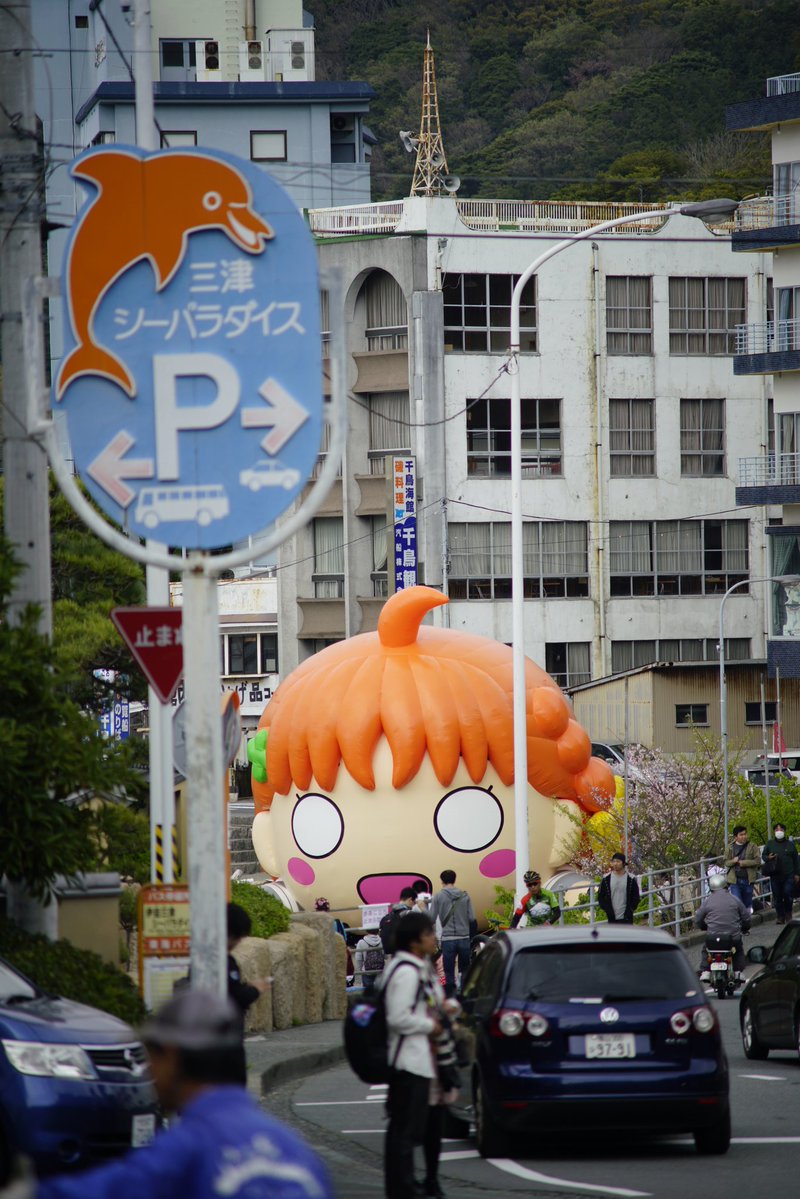 うわーこれも厳しいな…デカいから遠くからでも見えてる…ギョッとするよこんなん。町おこしになってるのはいいことだけどもパンツ丸見えの制服の少女のキャラを展示とかそういうことに慣れすぎてしまってるのはすごい怖い。 https://t.co/ff3db1N0dJ