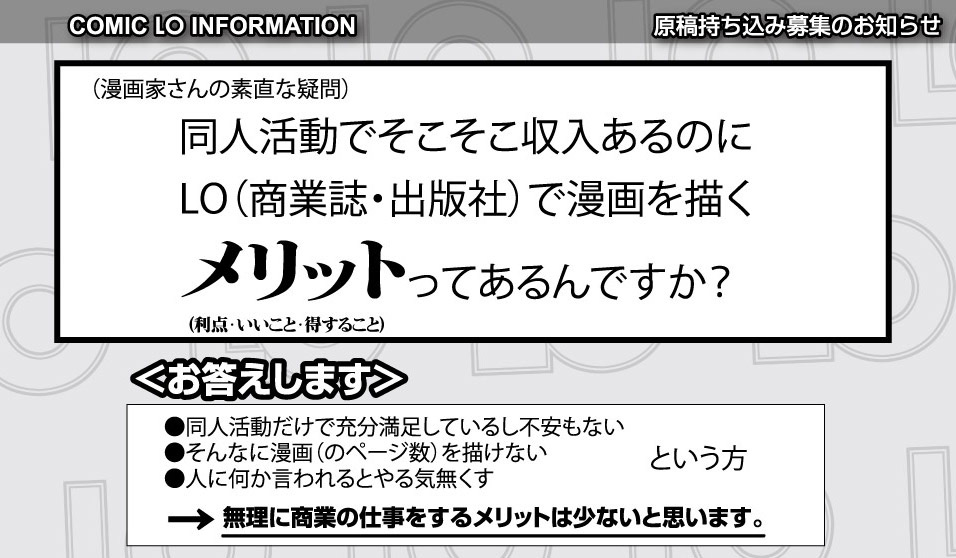 【画像】COMIC LO「これがLOで漫画を描くことのメリットだッ!!」バンッッッ