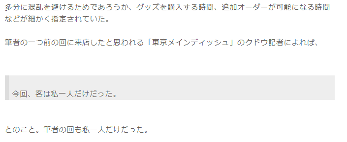 多分に混乱を避けるためであろうか、グッズを購入する時間、追加オーダーが可能になる時間などが細かく指定されていた。