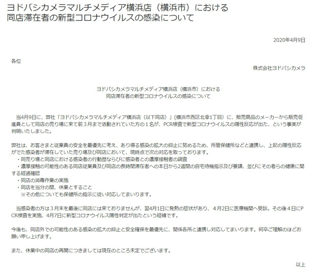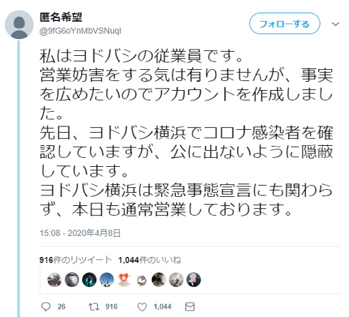 【隠匿】横浜ヨドバシ、感染者が出た事を隠して営業→従業員が告発→慌てて報告&休業→大炎上