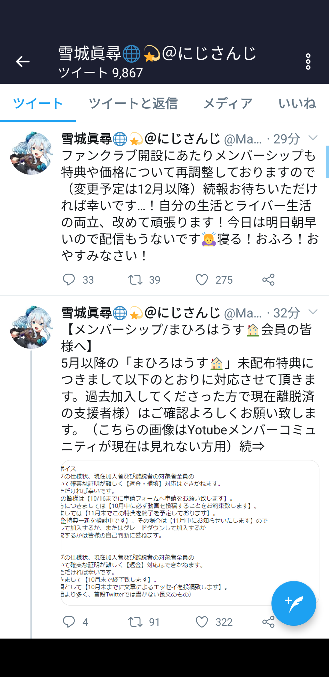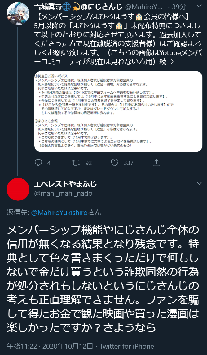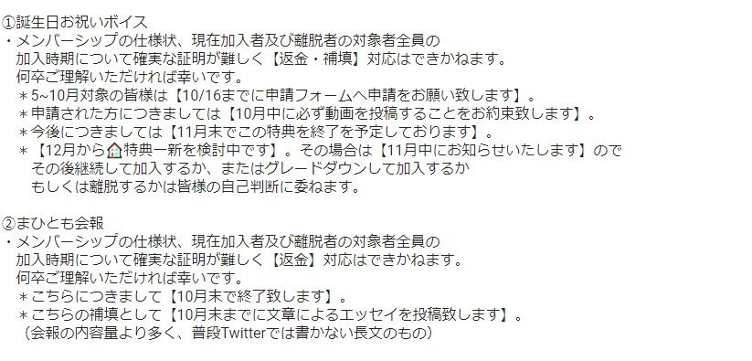【悲報】VTuber、月額制FCの会員特典を配布せず → 返金対応はしないと明言しファン激怒