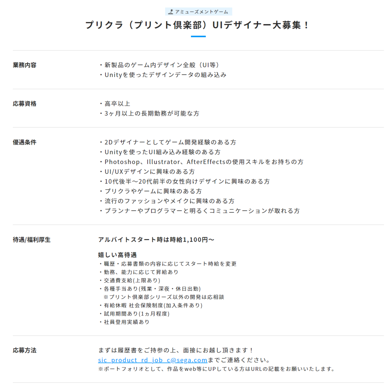 【画像】セガのUIデザイナー求人、時給1100円で草wwww