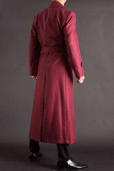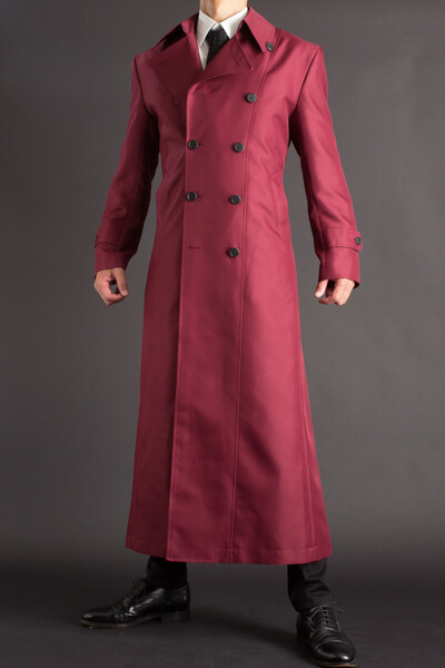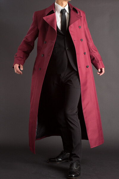 >生地メーカーに別注した当店オリジナルの生地を使用しワインレッドカラーの赤いロングコートが登場しました。
