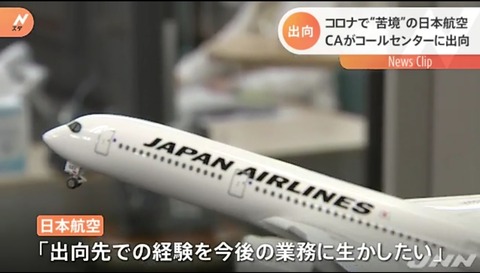 新型コロナの影響で、最大2700億円の赤字の見通しとなった日本航空では、社員の雇用を守るため、1日あたりおよそ600人が出向していて、この会社では客室乗務員およそ30人がアンケート調査などを任されています。「やはり、声だけでお伝えするというところで、正確な適切な表現ですとか、言葉遣いといったところがとても勉強になりまして、会社を辞めずして別のお仕事にチャレンジできる」(日本航空株式会社・客室乗務員 大田直子さん)