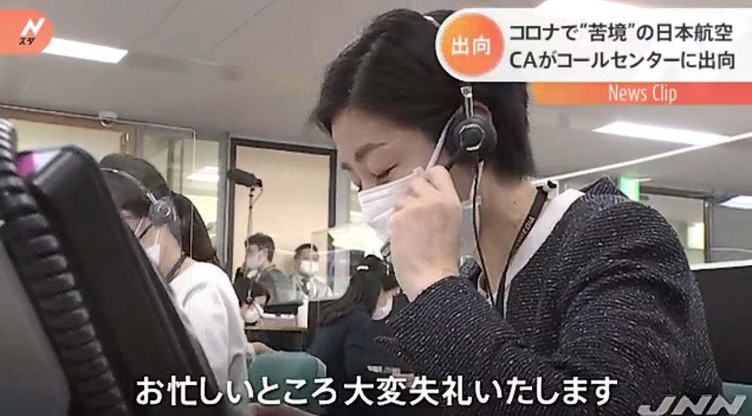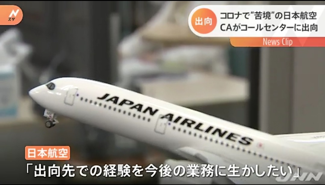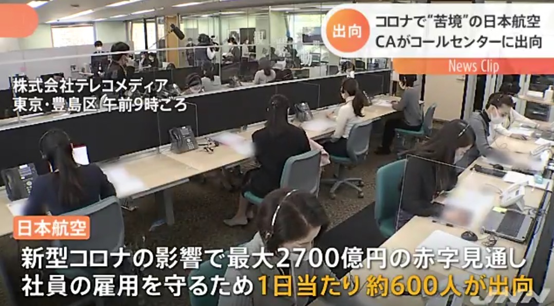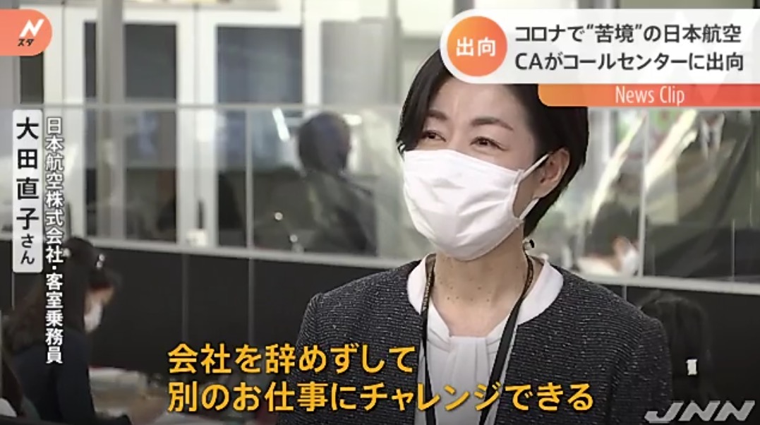 新型コロナの影響で、最大2700億円の赤字の見通しとなった日本航空では、社員の雇用を守るため、1日あたりおよそ600人が出向していて、この会社では客室乗務員およそ30人がアンケート調査などを任されています。「やはり、声だけでお伝えするというところで、正確な適切な表現ですとか、言葉遣いといったところがとても勉強になりまして、会社を辞めずして別のお仕事にチャレンジできる」(日本航空株式会社・客室乗務員 大田直子さん)
