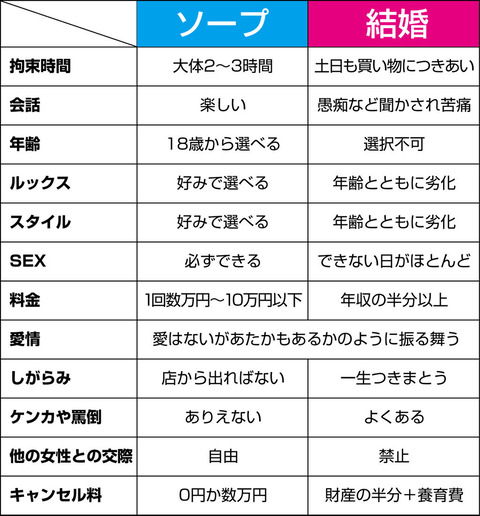 【画像】風俗と結婚を比較した表があまりにガバガバすぎるとまんさん大激怒→無事憤死へwwwwwwwwwwwww