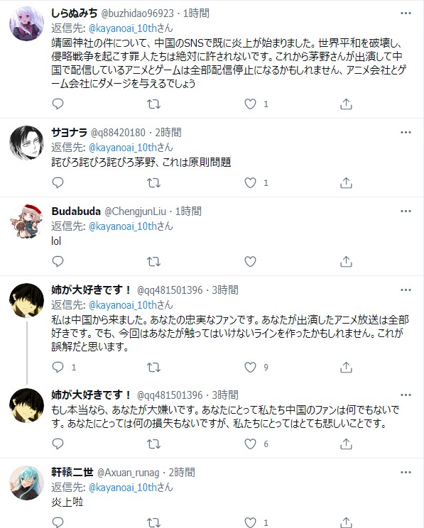 ホーム > 未分類 > 【悲報】人気声優さん、「靖国神社参拝」を報告してしまい中国人ブチギレ… 2021/02/14 【悲報】人気声優さん、「靖国神社参拝」を報告してしまい中国人ブチギレ… 1: 2021/02/13(土) 18:22:35.55 ID:XrrA5frS0 ラジオ番組で靖国神社に参拝 ↓ Twitterが中国からのリプで大炎上 続きを読む - 未分類