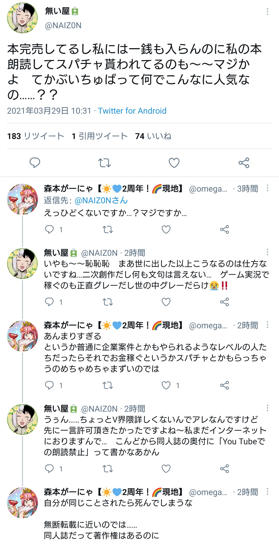 ホーム > 未分類 > 【悲報】同人作家、人気VTuberに同人誌を朗読され激怒する 2021/03/30 【悲報】同人作家、人気VTuberに同人誌を朗読され激怒する 1: 2021/03/29(月) 14:06:54.40 ID:N8qcPdK4dNIKU VtuberがアムロとシャアのBL同人誌を生配信でネタにする 同人作家ブチギレ 続きを読む - 未分類