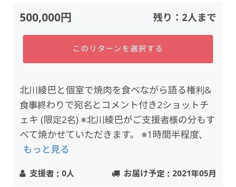 元SKE48北川綾巴「50万円で私と個室焼肉90分過ごせる権利売ります」→大炎上wwwwwwwwww