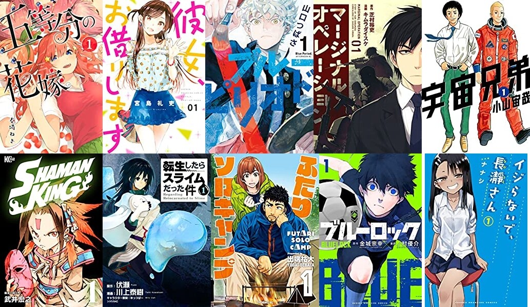 「五等分の花嫁」「彼女、お借りします」といったラブコメ、「ブルーピリオド」に「マージナル・オペレーション」に「宇宙兄弟」に「SHAMAN KING」に「GIANT KILLING」に「バトルスタディーズ」に「転生したらスライムだった件」に「ザ・ファブル」に…ぱっと見た感じ、巻数多めの作品も多くセールとなっています。