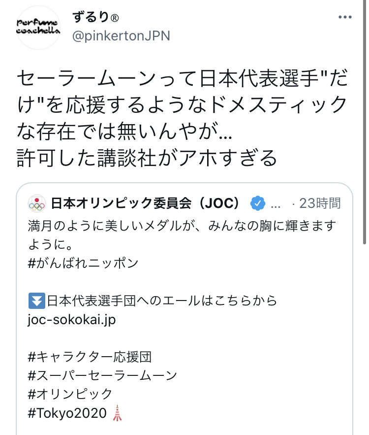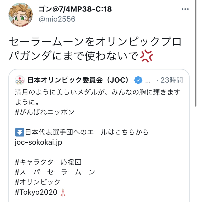 【画像】アニメアイコン、JOCの五輪応援ツイートに激怒「セーラームーンはそんなこと言わない」