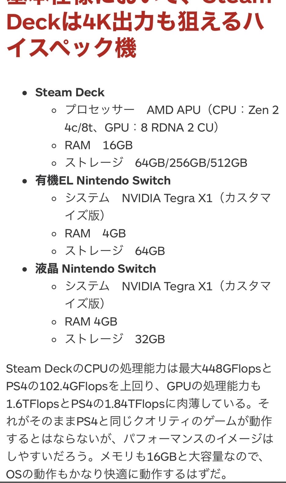 【画像】新型携帯ゲーム機『Steam Deck』とSwitchの性能を比較した結果wwwww