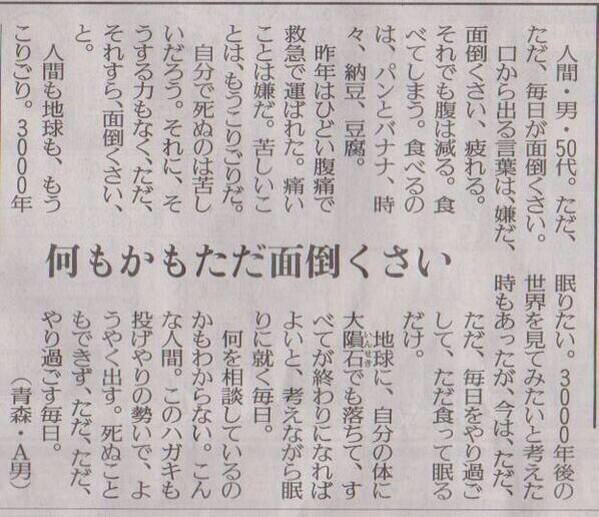 【悲報】50代男性がやけくそになって送った文章 新聞に掲載されてしまうwwwwwwwwwww