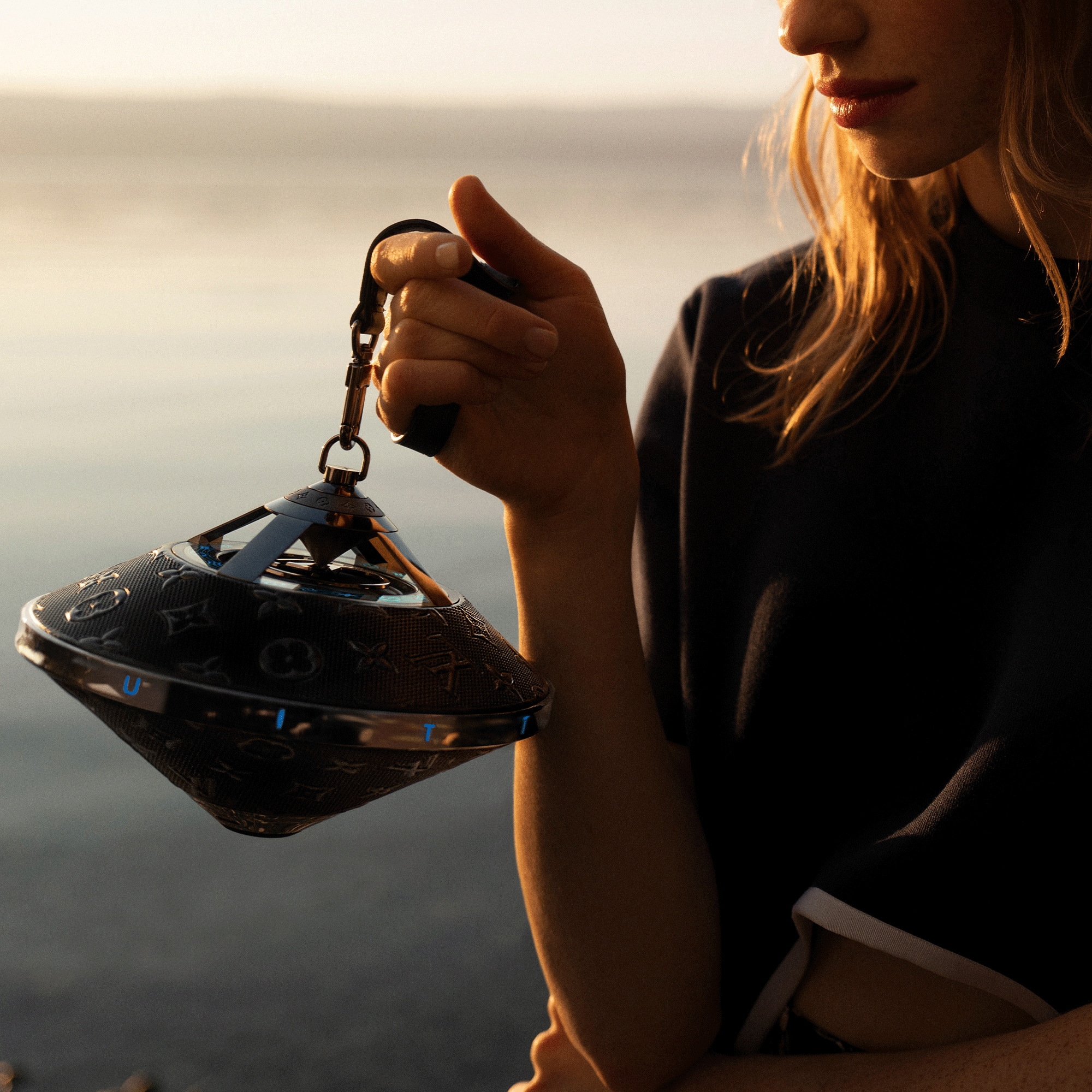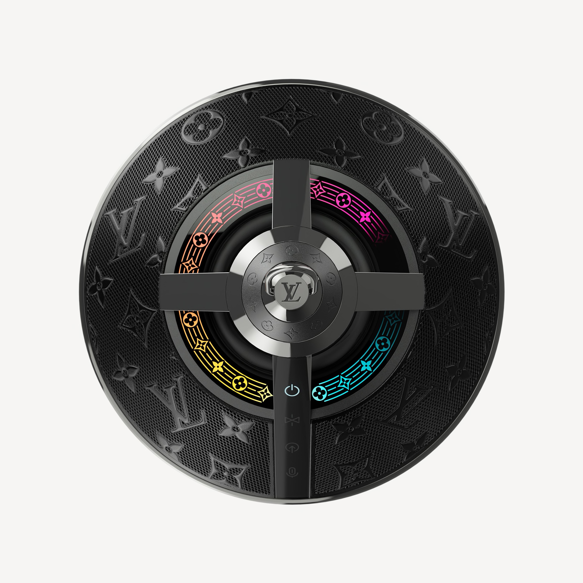 実はこれ、“コネクテッド コレクション”初のワイヤレススピーカー。この宇宙船のようなルックスは、実は全方位に音を届けるための理にかなったデザインなのだが、そうじゃなくとも大人のロマンをくすぐる見た目。さらに、“隠れミッキー”ならぬ“隠れロゴ”探しも捗るほど至るところにブランドアイコンが施されている、なんとも特別な仕上がり。