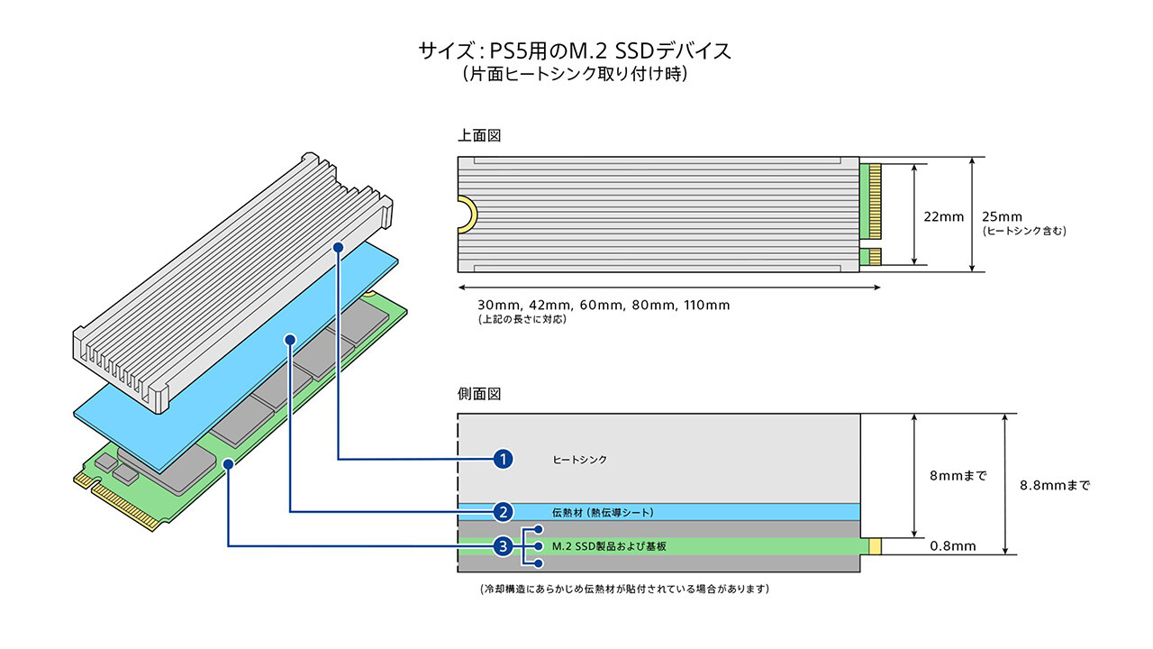 放熱構造を含むサイズ:25(W)×110(D)×11.25(H)mm未満