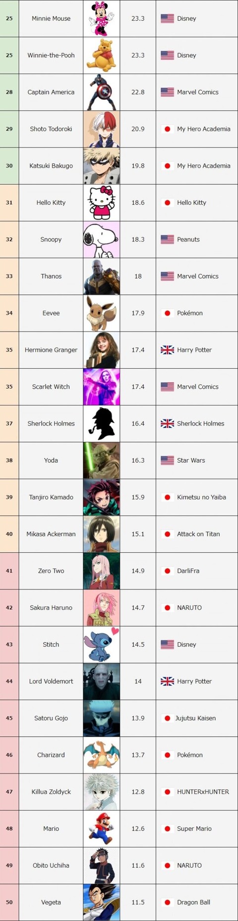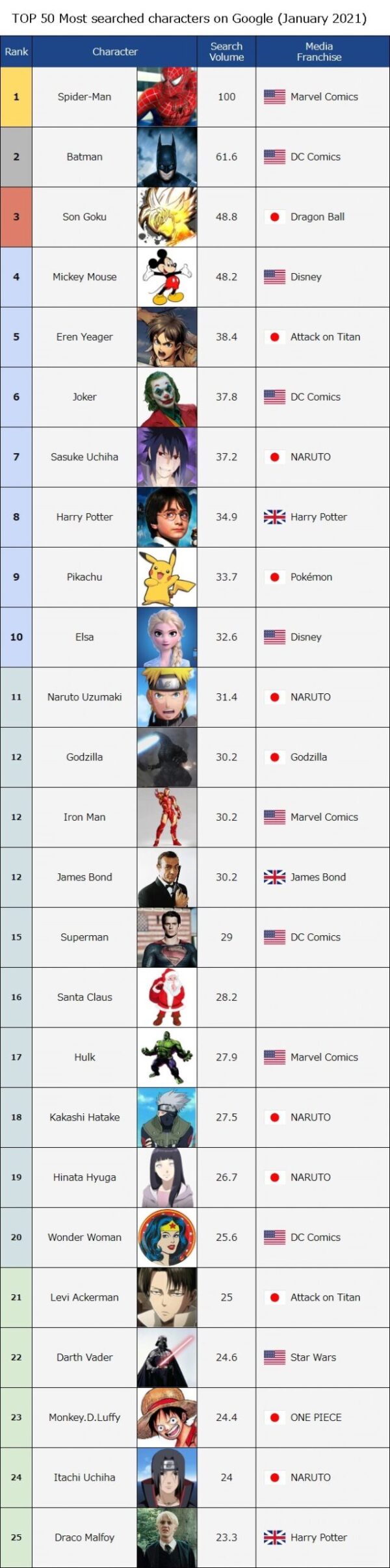 2021年1月にGoogleで最も検索されたキャラクターランキグンwywywywywywy