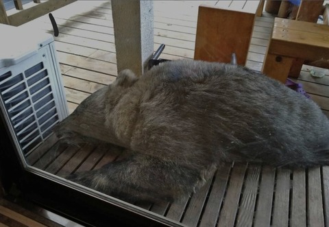 【画像】ウッドデッキでお昼寝していた熊さん、殺処分されてしまうwwwwwwwwwwwwwwwwwwwww