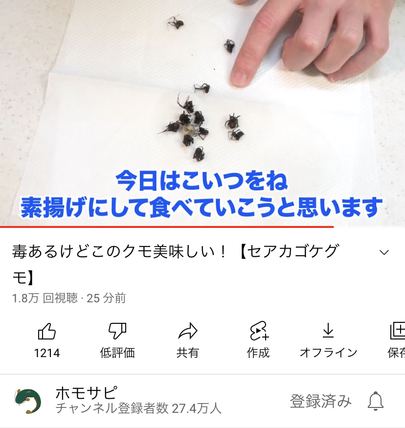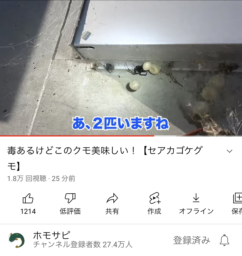 ホーム > 未分類 > 【画像】生き物系YouTuberさん、毒のあるクモを食べてしまうwwww 2021/12/06 【画像】生き物系YouTuberさん、毒のあるクモを食べてしまうwwww 1: 2021/12/04(土) 10:37:04.45 ID:48xmJ/Mrp 続きを読む - 未分類